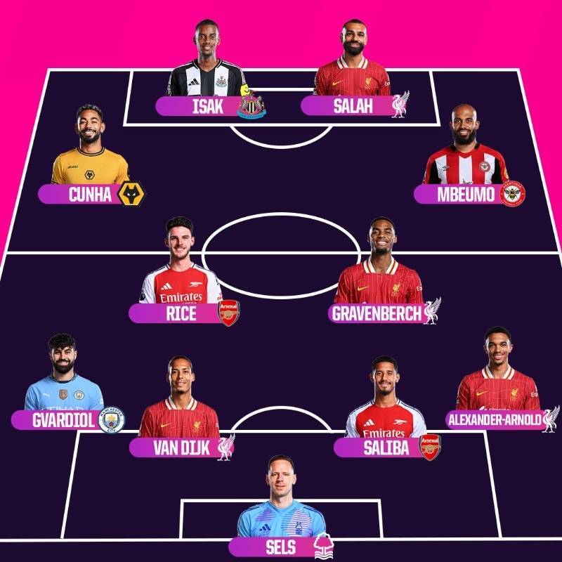 前锋:伊萨克(纽卡斯尔联)、萨拉赫(利物浦)