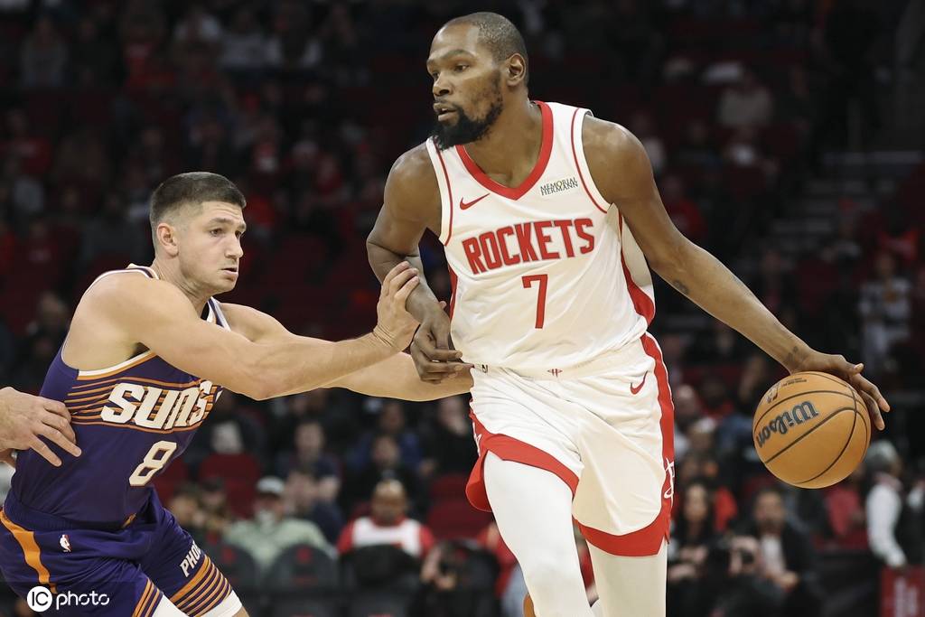 火箭队首发:阿门-汤普森、凯文-杜兰特、小贾巴里-史密斯、约什-奥科吉、史蒂文-亚当斯